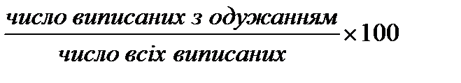 Розподіл виписаних із стаціонару за результатами лікування: з одужанням, з поліпшенням, без змін, з погіршенням: