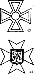 Но его же, согласно Российской геральдике, имели на своих гербах многие города, к примеру:, упомянутая выше Пермская губерния, Золотоноша (Рис. 15, фиг. 40), Миргород (Рис. 15, фиг. 41) и Зеньков (Рис. 15, фиг. 41) Полтавской губернии; Погар (Рис. 15, фиг. 40), Бонза (Рис. 15, фиг. 40) и Конотоп (Рис. 15, фиг. 41) Черниговской губернии; Ковель (Рис. 15, фиг. 40) Волынской, Павловск (Рис. 15, фиг. 44) С.-Петербургской, Виндава (Рис. 15, фиг. 40) Курляндской, Белозерск (Рис. 15, фиг. 40) Новгородской губерний, Елизавет-польская (Рис. 15, фиг. 43) губернии и прочие. Мальтийский крест получил название Георгиевского тогда, когда был выбран в качестве наградного воинского ордена (Рис. 15, фиг. 43) – "георгиевского креста", с наложенным изображением Георгия Победоносца, покровителя войнов. Крест на Рис. 15, фиг. 41 и 44 является так же объединением простых поворотных крестов — коловратов, но об этом ниже. В этой статье мы попытаемся отделить – "древний" крест от "христианского" креста, хотя реально эти понятия неразделимы, т.к христианские символы, на самом деле, не только "христианские", и даже, не только "дохристианские" – они важные символы всего человеческого мира, не зависимо от существующих религий, каждая из которых пытается приватизировать себе не только символы, но и древнюю мудрость.