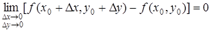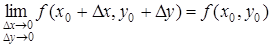 причем тоска М (х, у) стремится к точке М 0(х 0, у 0) произвольным образом, оставаясь в области определения функции. Если обозначим х = х 0 + D х, у = у 0 + D у, то равенство (2) можно переписать так: