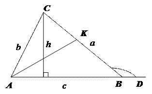 1. Нерівність трикутника: сума двох менших сторін трикутника завжди більша від більшої сторони: а + с > b. 2. Сума кутів трикутника 180°. 3. Зовнішній кут трикутника дорівнює сумі внутрішніх, не суміжних з ним: Ð CВD = Ð А + Ð C. 4. Властивість бісектриси: 5. Теорема косинусів: с ² = a ² + b ² – 2 ab× cos Ð C. 6. Теорема синусів: 7. Периметр трикутника – це сума всіх його сторін: 8. Середня лінія трикутника – це відрізок, який з’єднує середини двох сторін. Середня лінія трикутника паралельна до третьої сторони і дорівнює її половині. 9. Формули для знаходження площі трикутника: