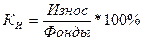 Фондоотдача - Фондоёмкость – показатель, обратный фондоотдаче, за базисный и отчетный годы по формуле Индекс динамики фондоотдачи IVп.с.= Индекс динамики фондоемкости Влияние интенсивного (качественного) и экстенсивного (количественного) факторов на абсолютное изменение физического объема продукции/услуг. Под экстенсивным фактором обычно понимают абсолютное изменение основных фондов. Под интенсивным – абсолютное изменение показателя фондоотдачи. Влияние экстенсивного фактора: Влияние интенсивного фактора: Влияние обоих факторов: Показатели фондовооруженности рабочих Индекс динамики фондовооруженности: Коэффициент износа основных фондов на конец отчетного года Износ фондов на конец отчетного года