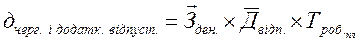 Фонд заробітної плати, призначений для оплати чергових і додаткових відпусток, розраховують добутком середньої денної заробітної плати на загальне число днів відпустки всіх робітників за формулою: