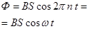 | Ф – поток вектора магнитной индукции через рамку, вращающуюся в магнитном поле; В – индукция магнитного поля; S – площадь рамки; п – частота обращения рамки; – циклическая частота колебаний магнитного потока; t – текущее время.