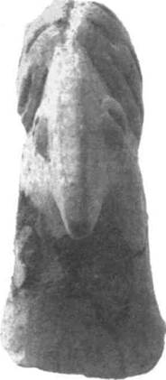 Рис. 7-15 Сосуд в виде утки из телля Вин-ча; на ней маска с остроконечным носом (клювом), большие полууруглые глаза и уши — как учеловека. Тонкостенная терракота, светло-коричневая тек-пура, волнистая поверхность с черными полосами из битумного красителя, полая внутри, с терстием у хвоста. Классическй период культуры винча; сосуд найден в телле Винча (к истоку от Белграда) на глуби-в7,05. Начало Утыс. до н.э.; лина 36 см, высота 20,8 см. Рис. 7-16 Птица с человеческой маской и «косичками». Верхушка и осно-шшеотбиты: не исключено, что яабыла прикреплена к большо-иусосуду. Культура сескло, Ма-!ущуозера Боэбис, район Сте-йиновикиона к северо-западу от I [Волос, Фессалия; вероятная да-тRD0BK.3 - конец VII тыс до н э Масштаб 1:1. Рис. 7-17 большой сосуд-пифос, на горюше- лик Богини-птицы 1швизображен рельефом, гла-и-при помощи нарезной тех- шя). Под клювом проведены де красные диагональные полосы. Ожерелье также выполне-но рееьефом. Тулово покрыто нарешым орнаментом и красными полосами, которые схо-штся спереди треугольником. Ранний период культуры винча, to, Македония. 5200-5000 гт.»н.э.. высота 92 см. Рис. 7-18 Сосуд в форме водоплавающей птицы. Ранний период культуры шча,Анза, Македония. 5200-5000гг. до н.э.; длина 60 см. Рис. 7-17 Рис. 7-18