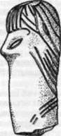 . Рис. 7-68 Статуэтки с тщательно уложенными локонами,спускающимися по обе стороны ливд. Культура сескло, Магу-ла-Панагу уЛариссы, Фессалия. Ок. 5900-5700 гт. до н.э. Гимбутас М. Цивилизация Великой Богини