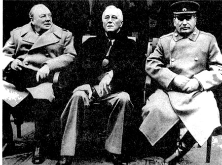 И. В. Сталин и Г. К. Жуков на трибуне Мавзолея В. И. Ленина. Москва. 24 июня 1945 г. Большая тройка» на Крымской конференции. Ялта. 1945 г. И. В. Сталин и министр иностранных дел Японии Ёсукэ Мацуока перед подписанием Пакта о нейтралитете. 1941 г. И. В. Сталин и начальник Генерального штаба командарм 1-го ранга Б. М. Шапошников. Москва. Кремль.1939 г. Немецкие листовки о Я.И. Джугашвили