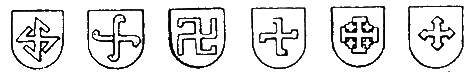 Даже после насаждения христианства, адепты которого старались уничтожать не только предметы национальных культур, но и сами архетипы, свастика (и равносторонний крест) всё равно оставалась не самым последним символом в жизни людей. В особенности это видно в западноевропейской геральдике под названиями Croix cramponnee, Croix patte и Croix crochet[730]: