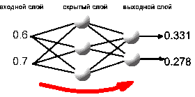 Обратное распространение ошибки - стандартный способ обучения нейронной сети, хотя существуют и другие методы (о них в одной из следующих глав). Принцип работы примерно такой: