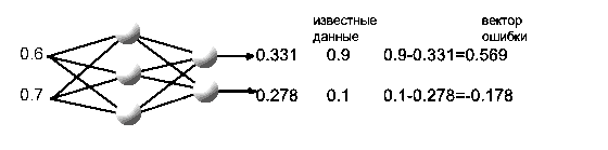 | | 2. Полученные данные сравниваются с известными выходными данными для рассматриваемого входного набора. Разница между полученными и известными (опытными) данными - вектор ошибки.