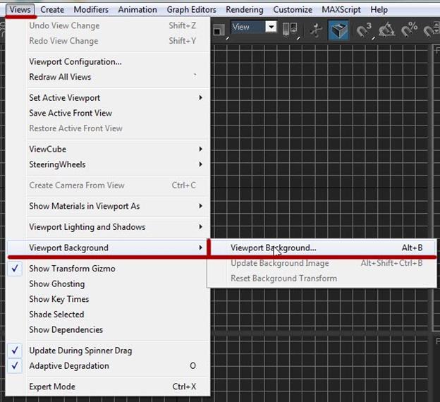 3. Идём в меню Views --> Viewport Background --> Viewport Background...