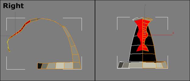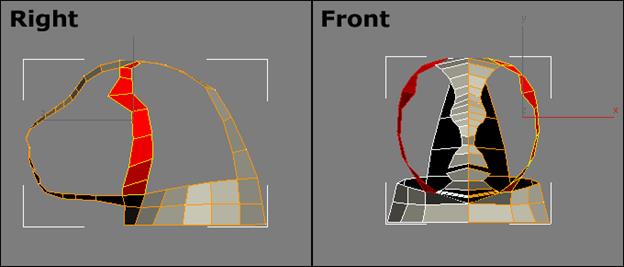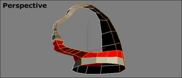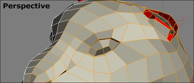 Шаг 19: Активируйте под-объект Border и выберите все грани отверстия уха. Создайте новые полигоны, копированием их вверх.