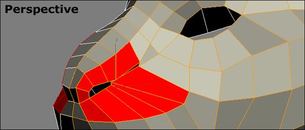 Шаг 18: Активируйте под-объект Border и выберите границу глаза. Создайте 8 полигонов, используя Scale с зажатым SHIFT. Используйте кнопку Create, чтобы создать оставшиеся полигоны.