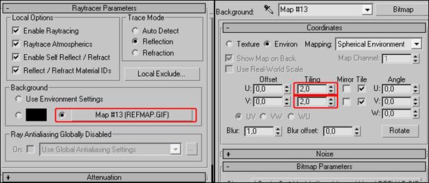 Используйте REFMAP.GIF как Bacground Map в Raytrace Установите значение Tiling равным 2.