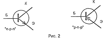 Теоретическое введение: Биполярный транзистор - полупроводниковый прибор, содержащий три полупроводниковые области с чередующимися типами проводимости: "n-р-n" или "р-n-р", которые называются соответственно эмиттером (Э), базой (Б) и коллектором (К). Эти области разделены "р-n" переходами - эмиттерный (ЭП) и коллекторный (КП) (рис. 1).