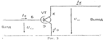 В зависимости от того, какой вывод транзистора: эмиттер, база или коллектор - являются общими для входной и выходной цепей транзисторов, применяются три схемы включения: схема с общей базой (ОБ), схема с общим эмиттером, схема с общим коллектором (ОК). В данной лабораторной работе исследуется транзистор типа "n-р-n", включенный в схему с общим эмиттером (см. рис.3).