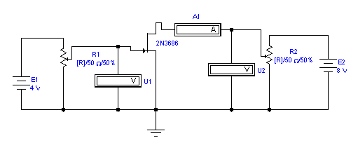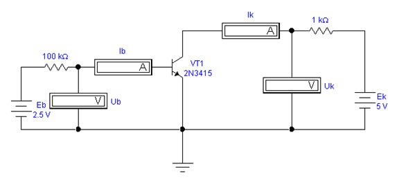 Для снятия входных и выходных характеристик транзистора служит следующая схема (рис. 4).