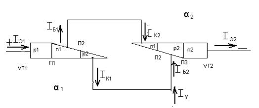 Ток Ik2 одновременно является током базы VT1. Этот ток обеспечивает инжекцию через переход П1, следовательно