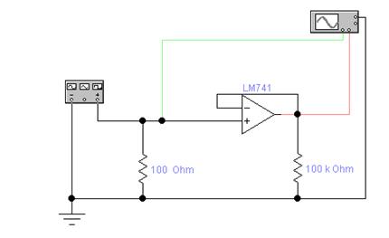 Коэффициент усиления напряжения схемы инвертирующего усилителя на ОУ (рис. 7.3) вычисляется по формуле: . Инвертирующий усилитель может, как ослаблять, так и усиливать сигнал.рис. 7.3