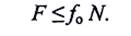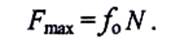Безразмерный коэффициент пропорциональности/, называется статическим коэффициентом трения скольжения. Он определяется опытным путем и зависит от материала соприкасающихся поверхностей, чистоты их обработки и, в довольно широких пределах не зависит от площади соприкосновения тел. При равновесии сила трения F всегда меньше или равна предельной силе трения Fmax, т.е.