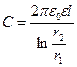 Подставив (13.8) в (13.3) и произведя замену Q=tl, получим выражение для ёмкости цилиндрического конденсатора: