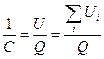 т.е. при последовательном соединении складываются величины, обратные ёмкостям. При этом ёмкость батареи конденсаторов всегда меньше ёмкости каждого из них, однако, распределение напряжения по отдельным конденсаторам позволяет использовать такую батарею в высоковольтных цепях.