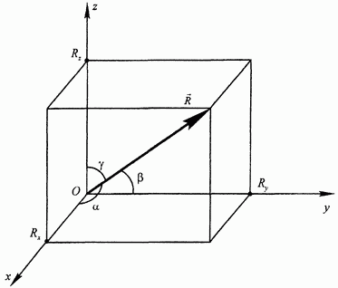 Эти равенства выражают правило: проекции равнодействующей сходящихся сил на выбранные координатные оси равны алгебраическим суммам проекций заданных сил на соответствующие оси. Далее, вспоминая правило построения вектора по его проекциям на координатные оси, строим равнодействующую R (рис. 26). Модуль и направляющие косинусы равнодействующей определяются по формулам