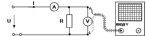 · Соберите цепь согласно схеме рис.1.12, включив в нее для начала резистор R = 100Ом. Подайте на вход питание от нерегулируемого источника постоянного напряжения +15 В, отрегулируйте осциллограф и убедитесь, что пульсации напряжения незначительны или отсутствуют, что напряжение равно 15±0,5 В, а ток примерно равен 150 мА. · Переключите мультиметр для измерения тока 2 А, замените резистор 100 Ом на 47 или 33 Ом, убедитесь, что появляются пульсации напряжения на выходе и через некоторое время срабатывает защита и включается сигнализация перегрузки.