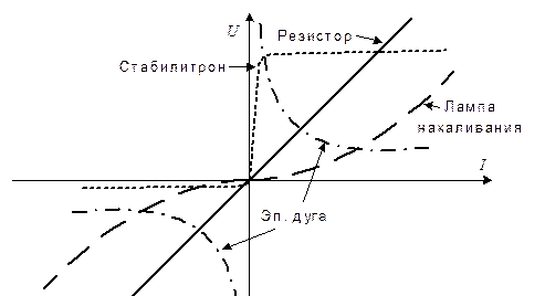 Снятие вольтамперных характеристик нелинейных элементов на постоянном токе Вольтамперная характеристика представляет собой график зависимости напряжения от тока U(I) (или наоборот I(U)) на данном элементе электрической цепи. У линейных резисторов вольтамперная характеристика представляет собой прямую линию U = RI (рис. 6.1). У нелинейных элементов (лампы накаливания, электрическая дуга, диоды, транзисторы и другие электронные приборы) эта зависимость более сложная и часто неоднозначная.