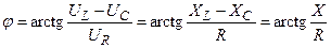 Из векторной диаграммы следует также, что угол сдвига между током и напряжением