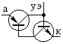 Работу тиристора можно пояснить, представив его в виде соединения двух транзисторов (рис. 4.3.). Если мы приложим прямое напряжение между анодом и катодом, оба транзистора будут закрыты, т.к. будет закрыт средний переход тиристора. Через этот переход, т.е. через базы обоих транзисторов, будет протекать только слабый ток утечки. Если прямое напряжение увеличивать, то ток утечки будет расти. Транзисторы включены так, что они создают положительную обратную связь по этому току, то есть коллекторный ток одного из них является током базы для другого. Увеличивая ток базы одного транзистора, мы увеличиваем его коллекторный ток. Это приводит к возрастанию тока базы второго транзистора и к росту его коллекторного тока, т.е. тока базы первого транзистора, и т.д., пока оба транзистора полностью не откроются.