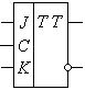JK -триггер имеет два логических входа J (Jump - перескок) и К (Keep - удержание), а также тактовый вход С (Clock - часы), на который подаются тактовые импульсы (рис. 8.6). В JK -триггере устранена неопределенность, возникающая в RS -триггере при одновременном поступлении двух единиц на входы. JK‑ триггер в этом случае меняет свое состояние на инверсное с приходом каждого тактового импульса. Состояния JK -триггера представлены в табл. 8.5. RS -триггеры работают в асинхронном режиме, JK‑ триггеры - в синхронном режиме. Кроме RS - и JK -триггеров, существуют также триггеры других типов. В общем же, схемы последовательной логики очень разнообразны.
