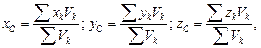 4. Метод інтегрування. Якщо тіло не можна розбити на частини, положення центрів ваги яких відоме, то тіло розбивають на елементарні об'єми. У цьому разі координати центра ваги визначають за формулами: