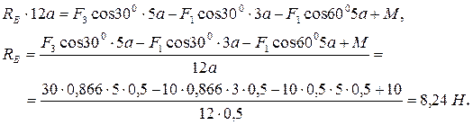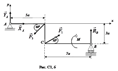 Реакция шарнирно-неподвижной опоры неизвестна по модулю и направлению, поэтому ее представляем в виде суммы двух составляющих и , направленных по координатным осям.