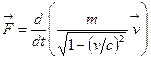 где m0 – масса покоя тела (частицы) в ИСО, относительно которой оно покоится (minimum); m – масса в ИСО, относительно которой оно движется со скоростью v, т.е. масса различна в разных ИСО и с ростом скорости движения u – увеличивается. В релятивистской динамике основной закон имеет вид (