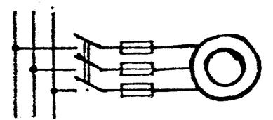 Рис. 3.22 Значение пускового момента находится из (3.23) при s = 1: . (3.38) Из рис. 3.18 видно, что пусковой момент близок к номинальному и значительно меньше критического. Для серийных двигателей кратность пускового момента МП/ МНОМ = (1.0,…,1.8). Приведенные данные показывают, что при прямом пуске в сети, питающей двигатель, возникает бросок тока, который может вызвать настолько значительное падение напряжение, что другие двигатели, питающиеся от этой сети, могут остановиться. С другой стороны, из-за небольшого пускового момента при пуске под нагрузкой двигатель может не преодолеть момент сопротивления на валу и не тронется с места. В силу указанных недостатков прямой пуск можно применять только у двигателей малой и средней мощности (примерно до 50 кВт).
