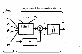And. Drawing 1.8. A radial basic network with R inputs () and the schedule of function of activation () This function has a maximum equal 1, if input is equaled 0. Networks кластеризац і ї and classifications of data. In the course of the analysis of the big information data files invariably there are the problems connected with association of these data in groups (кластеры). Self-organising of the networks described by Finnish scientist T.Kohonenom [9]. Are based on a competing layer - a layer which forms 1 on an exit нейрона, having on an exit maximum сигна and 0 on all the others.