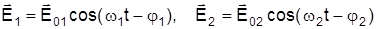 не залежить від часу. В (2) Взаємодія таких хвиль в деякій точці середовища називіється їх додаванням. Результат додавання цих хвиль знаходиться за допомогою метода фазових діаграм. Цей метод полягає у тому, що на площині, яка обертається з частотою