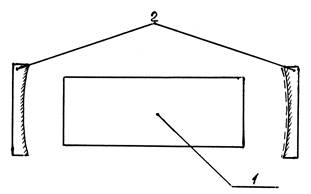 Рис.1 1 - активная среда, 2 - оптический резонатор.