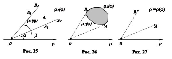 Если область D (рис. 25 – 27) ограничена лучами, образующими с полярной осью углы j 1 = a, j 2 = b, и кривыми