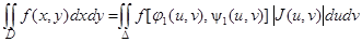 если сходится один из этих интегралов (сходимость другого следует отсюда). Формула (22) верна и для случая неограниченных областей. Замена переменных, наряду с переходом к повторному интегралу, является удобным средством для установления сходимости несобственных двойных интегралов.