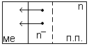 В этом случае электроны из Ме начинают переходить в п.п. Приконтактный слой п.п. становится обогащённым и имеет малое сопротивление при любой полярности внешнего поля. Такой контакт называется омическим (не выпрямляющим) Аме>Aп.п (р-тип)