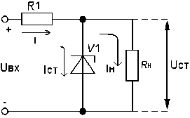 При скачке напряжения питания, стабилитрон открывается и ток через него резко увеличивается, увеличивается и падение напряжения на нём. Простейшим стабилизатором напряжения является стабилизатор на кремниевом стабилитроне