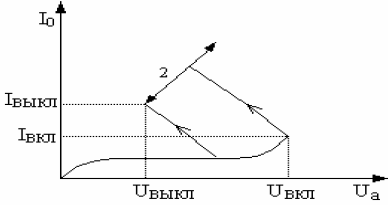 Если подать на управляющий электрод «у» напряжение такойполярности, что первый эмитерный переход будет включен в прямом направлении, то инжекция из эмиттера увеличиться, что приведет к уменьшению напряжения включения. Другими словами, меняя напряжение на управляющем электроде, можно изменять ток эмиттера, а, следовательно, и величину Uвкл.