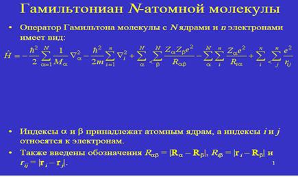 Молекула. Оператор Гамильтона молекула. Общее представление о квантовом описании молекул. Ядра атомов. Общее представление о структуре ядра атома.