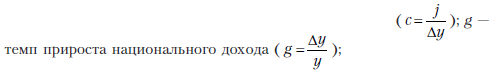 – темп прироста капиталовложений; а – доля сбережений в национальном доходе; b – средняя производительность инвестиций. 2. Модель экономического роста Харрода исследует траекторию роста экономики. В ней увязываются темп роста национального дохода в предшествующий период с заданным периодом времени на будущее. Он различает действительный и гарантированный темпы дохода. Если действительный темп роста больше (или, наоборот, меньше) гарантированного, то доход будет расти быстрее (или медленнее), чем это необходимо для поддержания равновесия, вызывая накапливающиеся отклонения от равновесной траектории: c × g = s, где с – объем накопления, деленный на прирост национального дохода