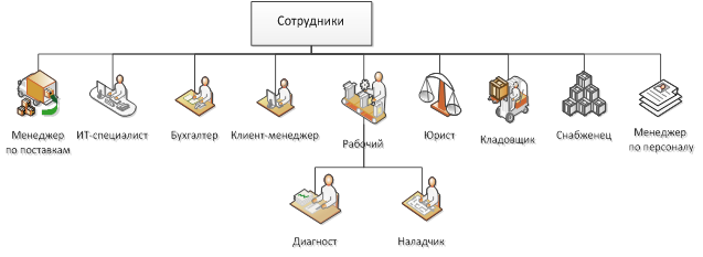 4.1 Обоснование проектных решений по техническому обеспечению Под техническим обеспечением понимают состав, формы и способы эксплуатации различных технических устройств, необходимых для выполнения информационных процедур: сбора, регистрации, передачи, хранения, обработки и использования информации. К элементам технического обеспечения относятся: комплекс технических средств, организационные формы использования технических средств, персонал, который работает на технических средствах, инструктивные материалы по использованию техники. Комплекс технических средств — это совокупность взаимосвязанных технических средств, предназначенных для автоматизированной обработки данных[W]. Требования к комплексу технических средств · минимизация затрат на приобретение и эксплуатацию; · надежность; · защита от несанкционированного доступа; · рациональное распределение по уровням обработки. В комплексе технических средств выделяются: Средства сбора и регистрации информации: · автоматические датчики и счетчики для фиксации наступления каких-либо событий, для подсчета значений отдельных показателей; · весы, часы и другие измерительные устройства; · персональные компьютеры для ввода информации документов и записи ее на носители; · сканеры для автоматического считывания данных с документов и их преобразования в графическое, цифровое и текстовое представление. Комплекс средств передачи информации: · компьютерные сети (локальные, региональные, глобальные); · средства телеграфной связи; · радиосвязь; · спутниковая связь и др; · GPS связь; · GSM связь. Средства хранения данных: · оптические диски (CD, DVD); · USB-накопители (flash, HDD); · жесткий диск. Средства обработки данных или компьютеры, которые делятся на классы: · суперкомпьютеры; · персональные компьютеры; · ноутбук: · карманный компьютер. Средства вывода информации: · мониторы; · принтеры; · плоттеры. Средства организационной техники: · изготовления, копирования, обработки и уничтожения документов; · специальные средства (банкоматы), детекторы подсчета денежных купюр и проверки их подлинности и пр. Централизованное техническое обеспечение базируется на использовании в информационной системе больших ЭВМ и вычислительных центров. Децентрализация технических средств предполагает реализацию функциональных подсистем на персональных компьютерах непосредственно на рабочих местах. Перспективным подходом следует считать частично децентрализованный подход — организацию технического обеспечения на базе распределенных сетей, состоящих из персональных компьютеров и большой ЭВМ для хранения баз данных, общих для любых функциональных подсистем [V]. Для проектируемой информационной системы клиентского отдела СПССК «АгроСнаб-М» выбран частично децентрализованный подход к организации технического обеспечения. Частичная децентрализация технических средств объясняется особенностями выбранной файл-серверной архитектуры информационной системы. Среди средств сбора и регистрации информации выделены такие элементы, как: · персональный компьютер для каждого сотрудника; · компьютер – сервер; · 2 МФУ (принтер-сканер-копир). Среди средств передачи информации: выделены такие элементы, как: · локальная сеть, налаженная между всеми компьютерами организации · сеть Internet Среди средств хранен