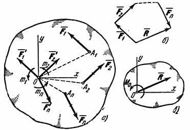 Рис.28 Силы, приложенные в центре О, можно заменить одной силой Точно так же, по теореме о сложении пар, все пары можно заменить одной парой, лежащей в той же плоскости. Момент этой пары Величина