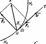 где Данное определение соответствует понятию о работе, как о характеристике того действия силы, которое приводит к изменению модуля скорости точки. В самом деле, если разложить силу Замечая, что