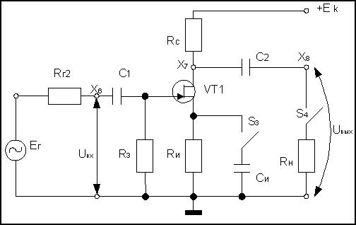 Для линейных участков амплитудных характеристик коэффициент усиления определяется по соотношению (3.7). Усилительные каскады с общим истоком обеспечивают получение сравнительно большого коэффициента усиления по напряжению и большого входного сопротивления, так как Rз берется порядка долей мОм, имеют относительно высокое выходное сопротивление. В полосе рабочих частот фазовый сдвиг равен 180°. 2. Методические указания к выполнению работы