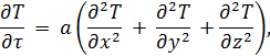 а – коэффициент температуропроводности; x, y, z – координаты. Данное уравнение в общем виде устанавливает связь между временными и пространственными изменениями температуры в любой точке тела. Коэффициент температуропроводности Коэффициент температуропроводности – величина, характеризующая скорость распространения изотермических поверхностей в нестационарных тепловых процессах. Обозначают коэффициент температуропроводности a и выражают в метрах квадратных в секунду (м2/с). Для вычисления величины коэффициента температуропроводности используется выражение а =